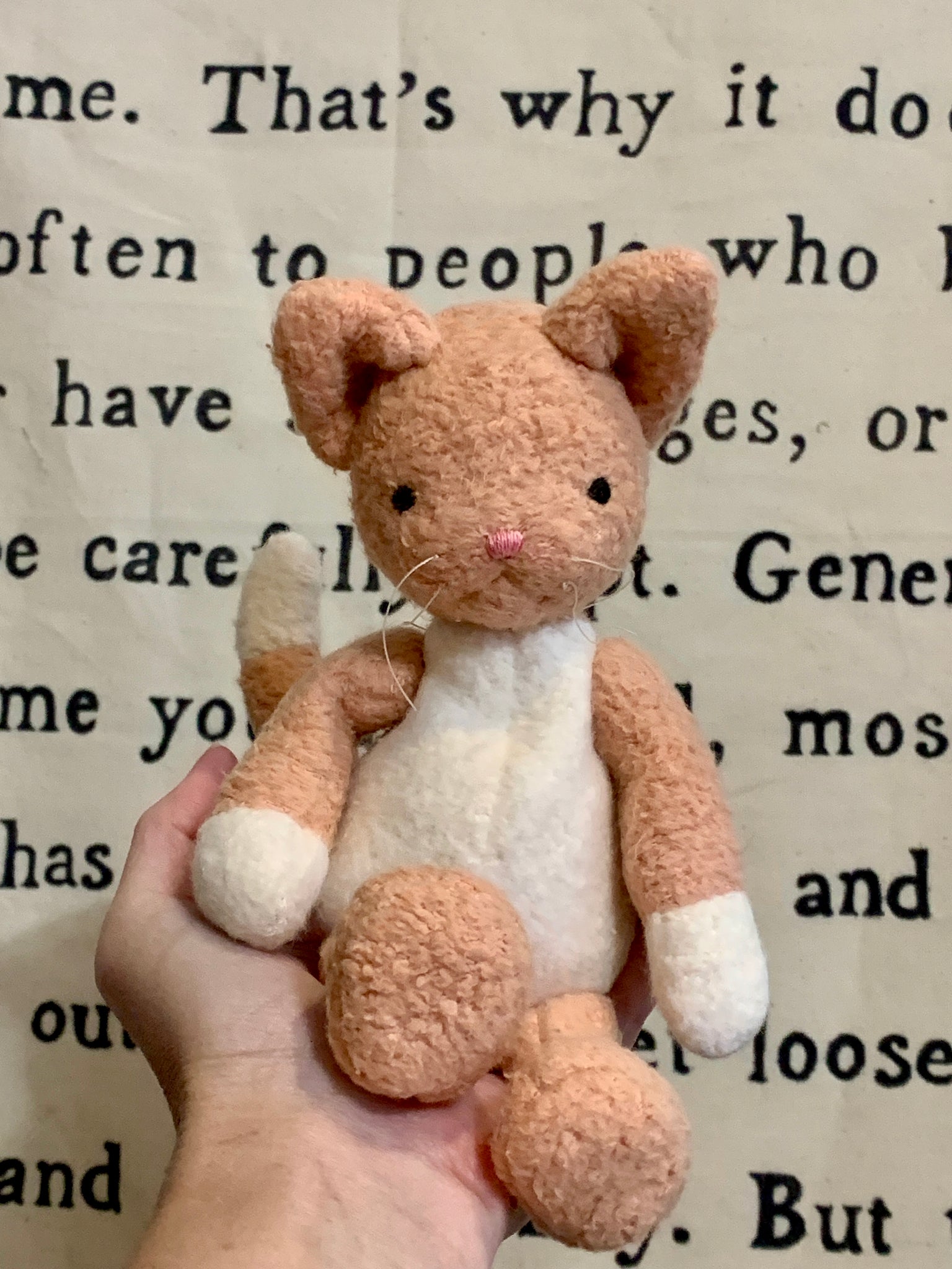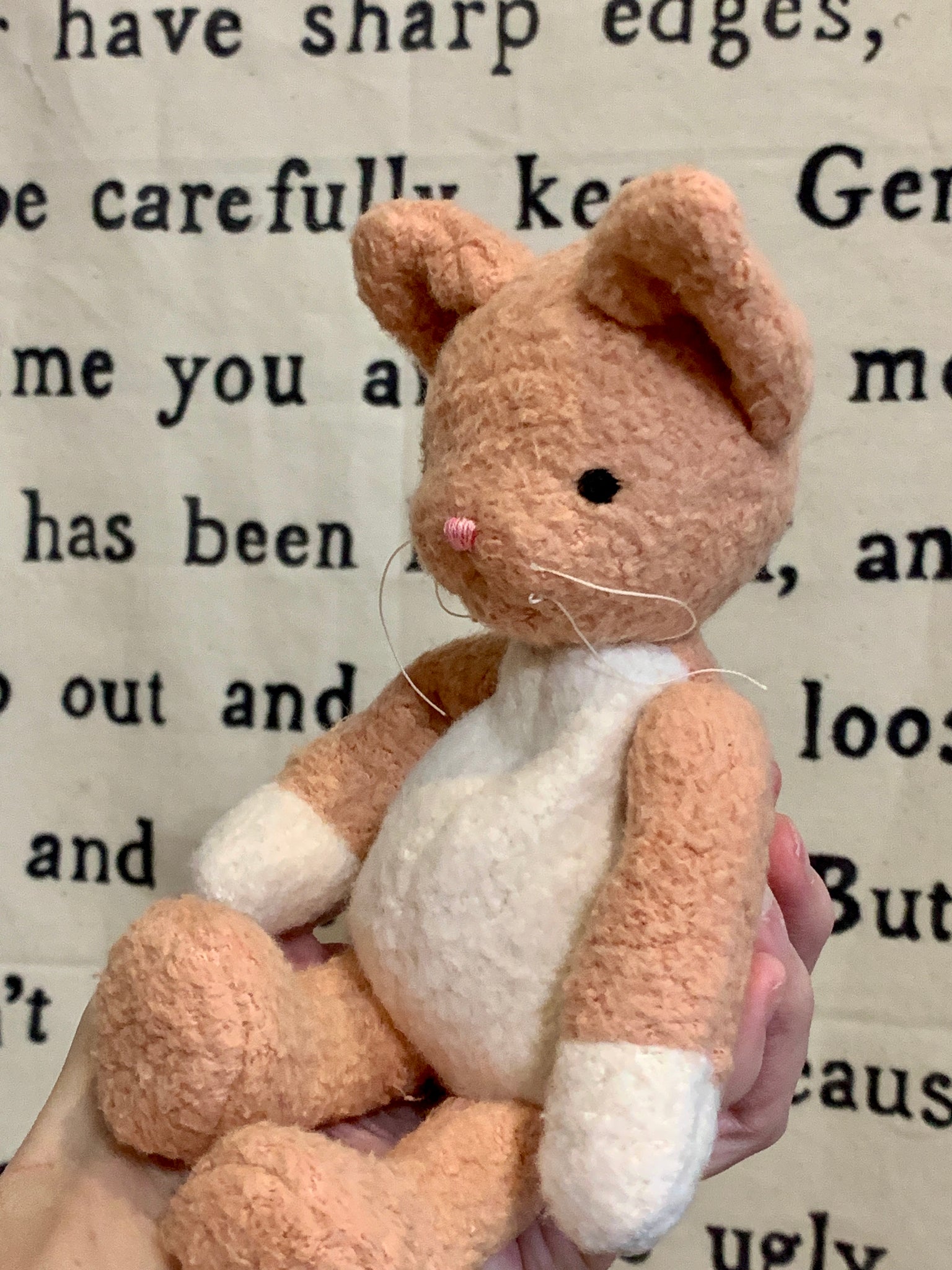Rusty is handmade with cotton fabric and stuffed with wool and poly pellets.